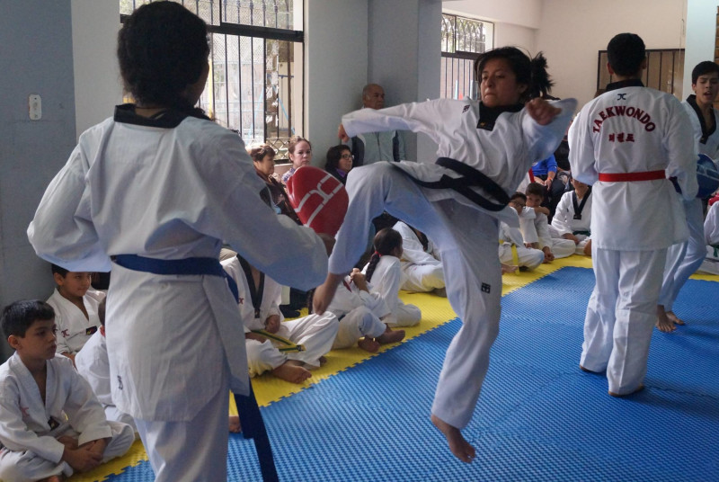 Academia de Taekwondo, con profesores altamente calificados y asistentes que hacen que las clases tengan un seguimiento personalizado para el alumno, amplias y cómodas instalaciones totalmente equipadas para las sesiones y enseñanza de esta disciplina.