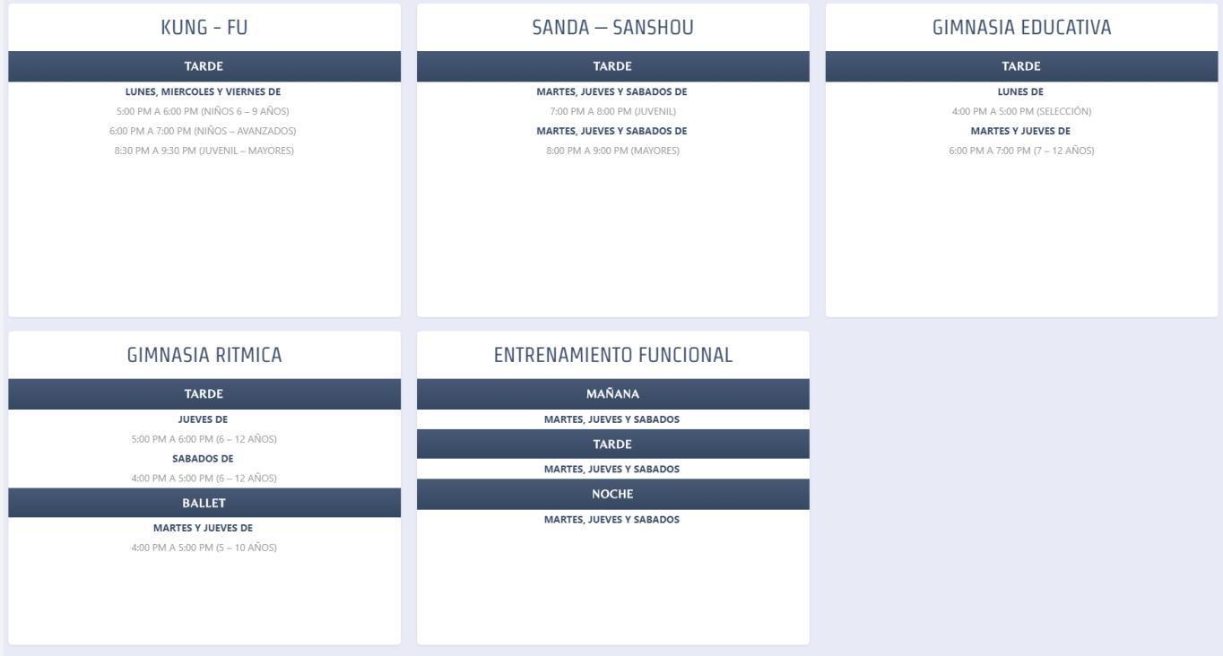 En Centro De Entrenamiento Yang Shuan se ofrecen actividades como Abdominales, Acondicionamiento Físico, Gimnasia Localizada, Ballet clásico, Folklore, Entrenamiento funcional, Yoga y Kung Fu.